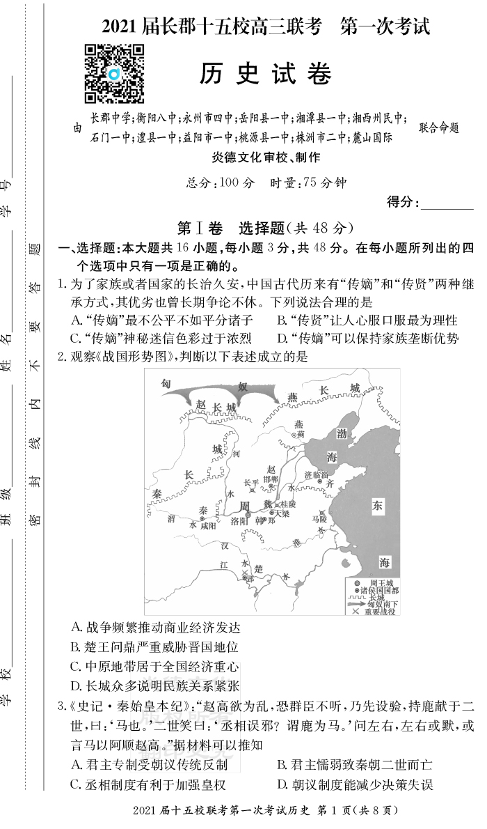 上一篇:【化學】炎德英才大聯考2021屆長郡中學高三7次月考(十五校聯考一)