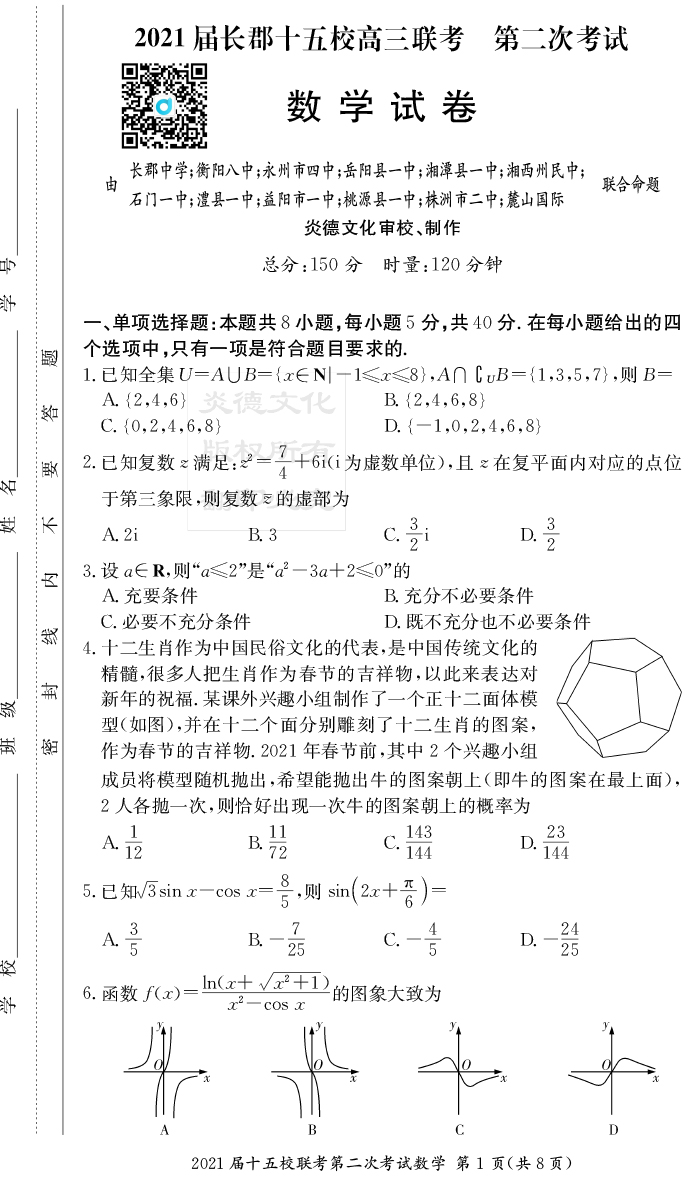 下一篇:【物理】炎德英才大聯考2021屆長郡中學高三8次月考(十五校聯考二)