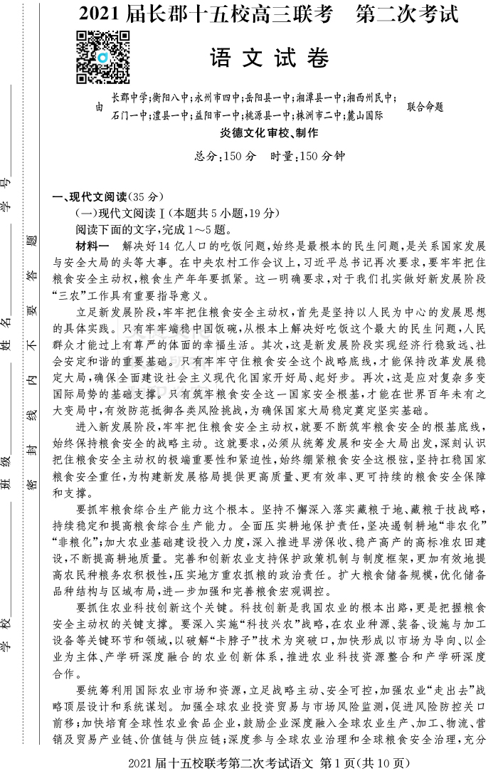 下一篇:【政治】炎德英才大聯考2021屆長郡中學高三8次月考(十五校聯考二)
