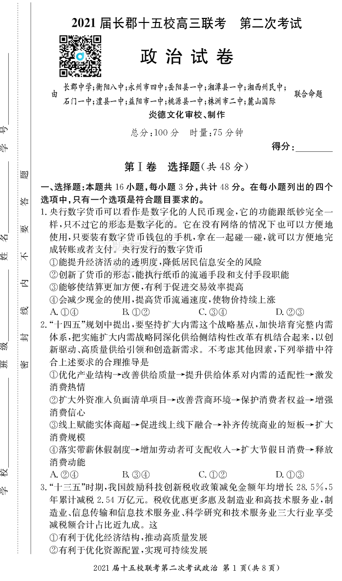 上一篇:【語文】炎德英才大聯考2021屆長郡中學高三8次月考(十五校聯考二)