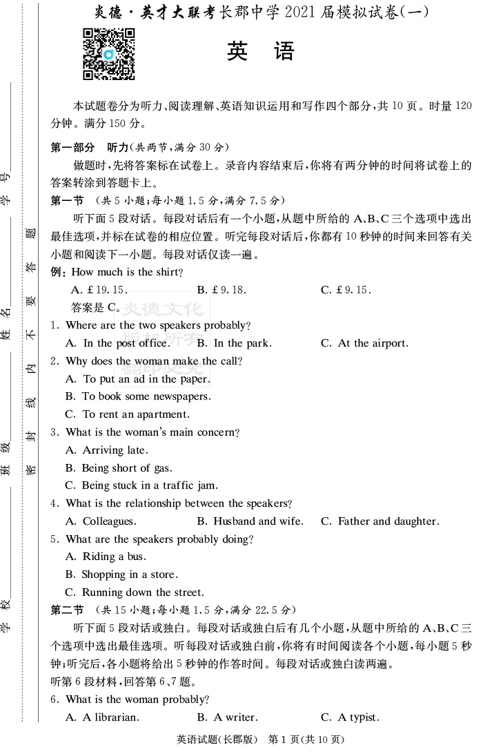 下一篇:【語文】炎德英才大聯考2021屆長郡中學高三9次月考(模擬一)