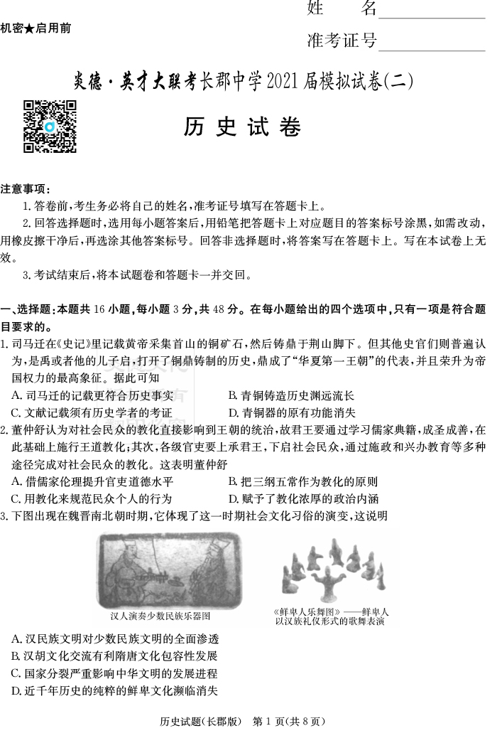 2025名師導學·名校名卷經典試題匯編·歷史