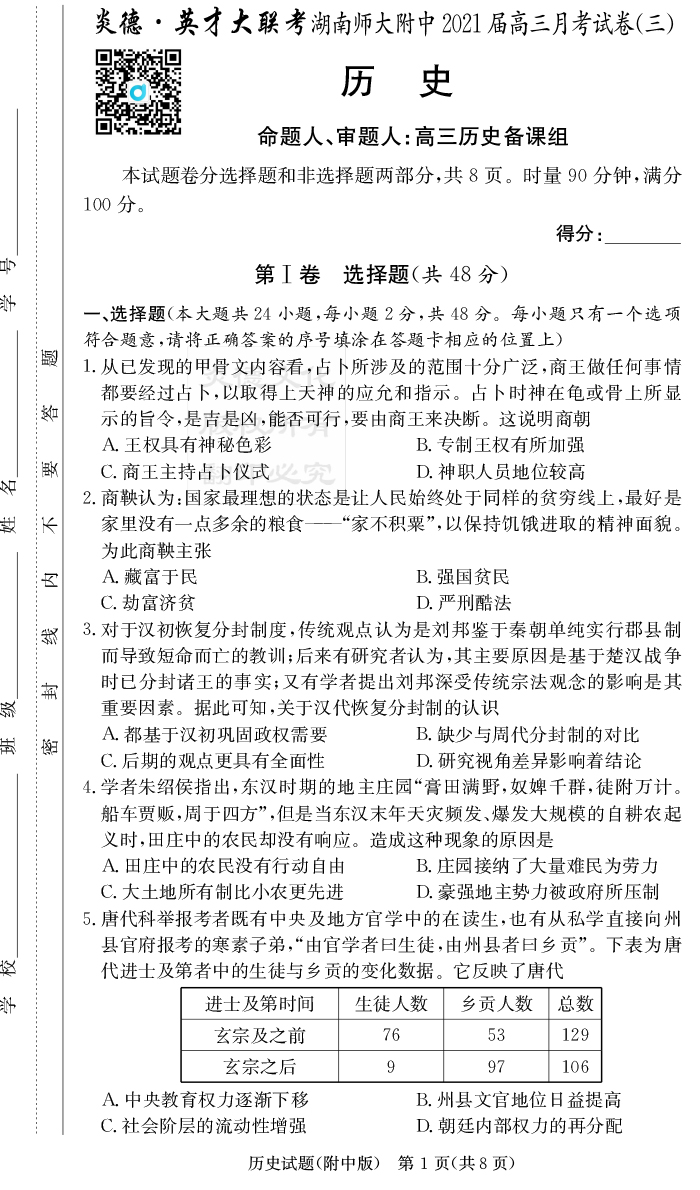2026名師導學·高考總復習·小題量基礎周周考·歷史