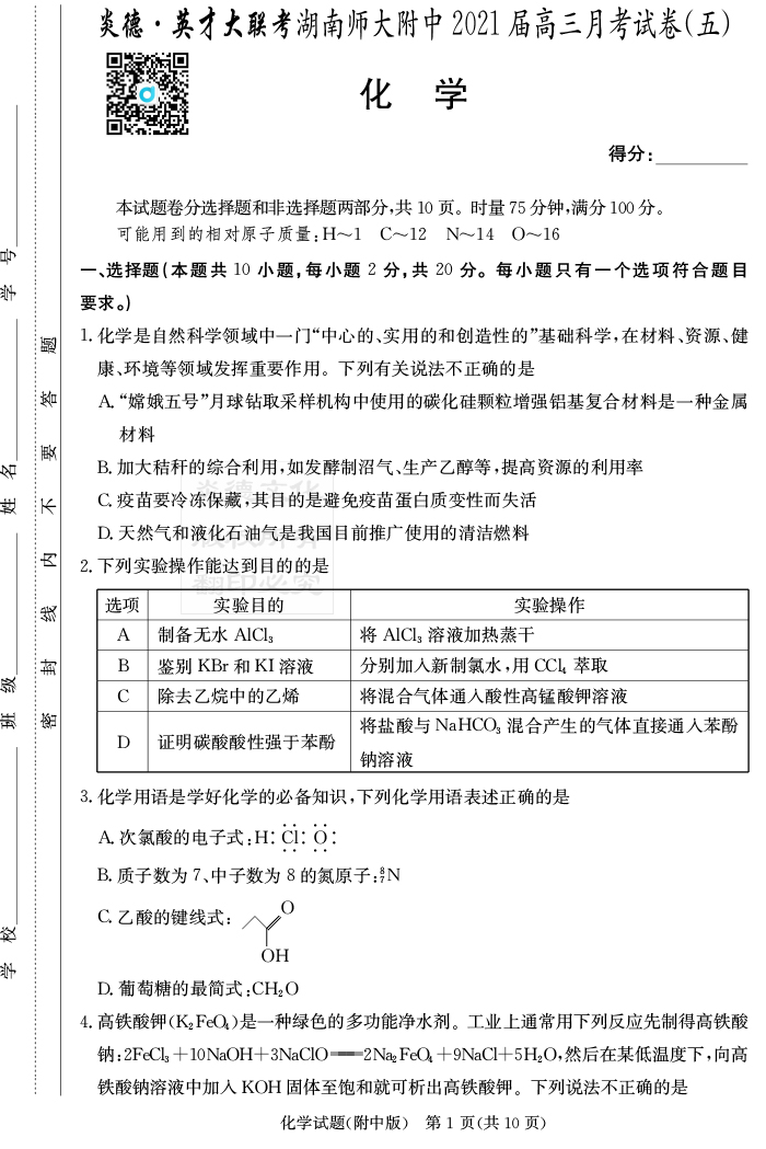 2026名師導學·高考總復習·小題量基礎周周考·化學
