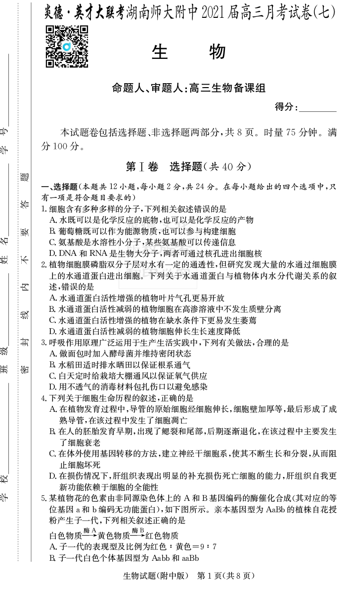 上一篇:【歷史】炎德英才大聯考2021屆湖南師大附中高三7次月考