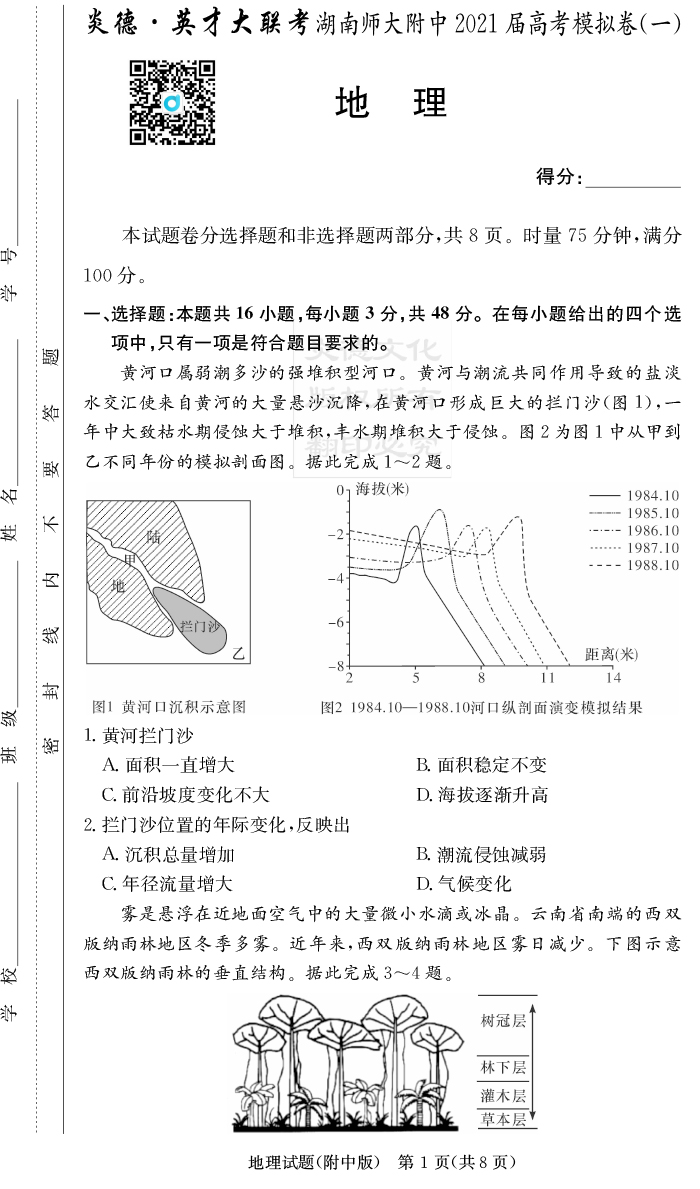 上一篇:【政治】炎德英才大聯考2021屆湖南師大附中高三7次月考