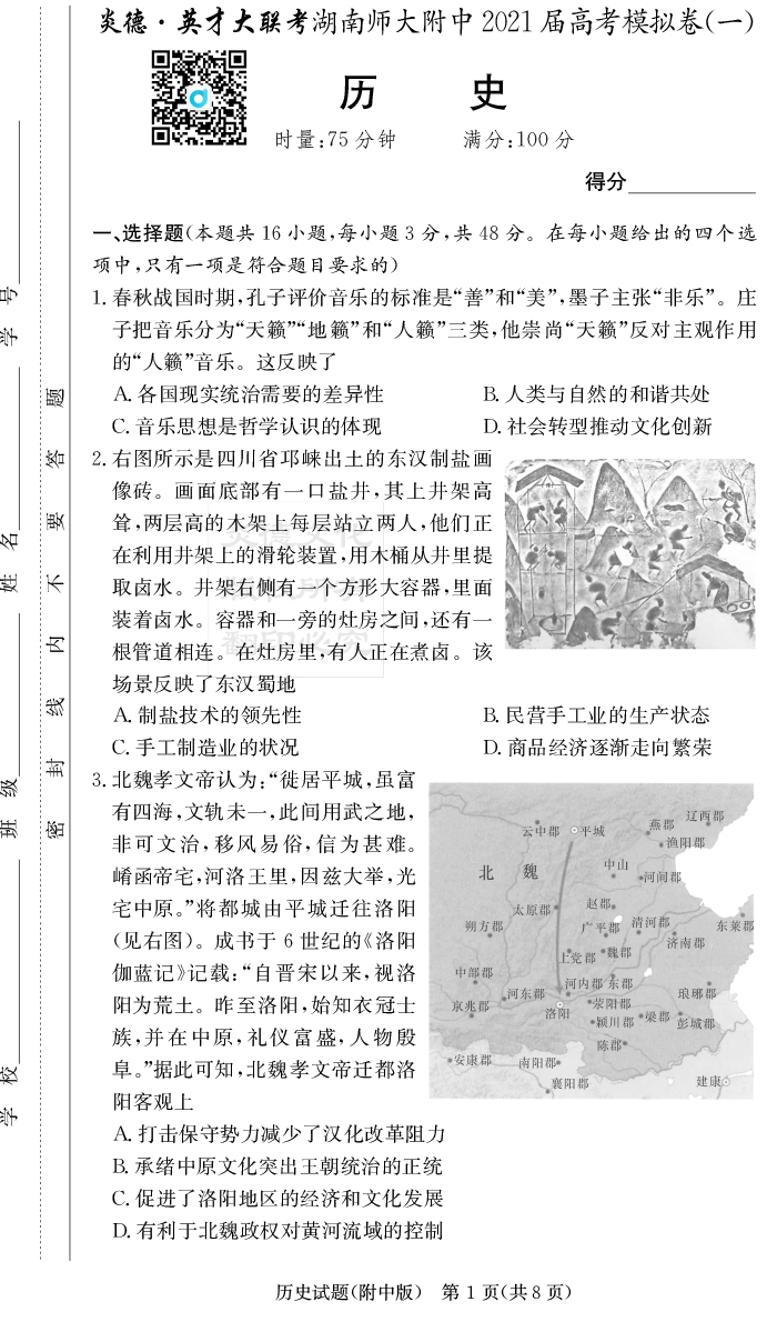 上一篇:【化學】炎德英才大聯考2021屆湖南師大附中高三8次月考(模擬一)
