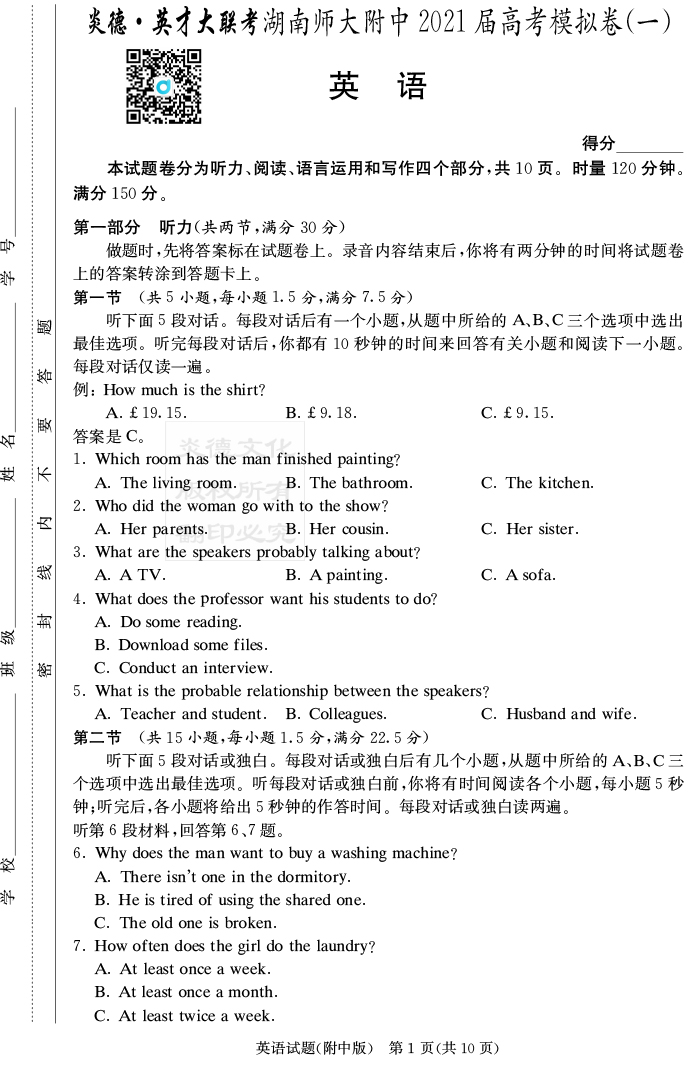 下一篇:【語文】炎德英才大聯考2021屆湖南師大附中高三8次月考(模擬一)