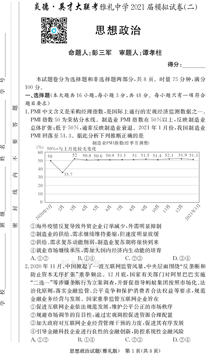 上一篇:【語(yǔ)文】炎德英才大聯(lián)考2021屆雅禮中學(xué)高三10次月考(模擬二)