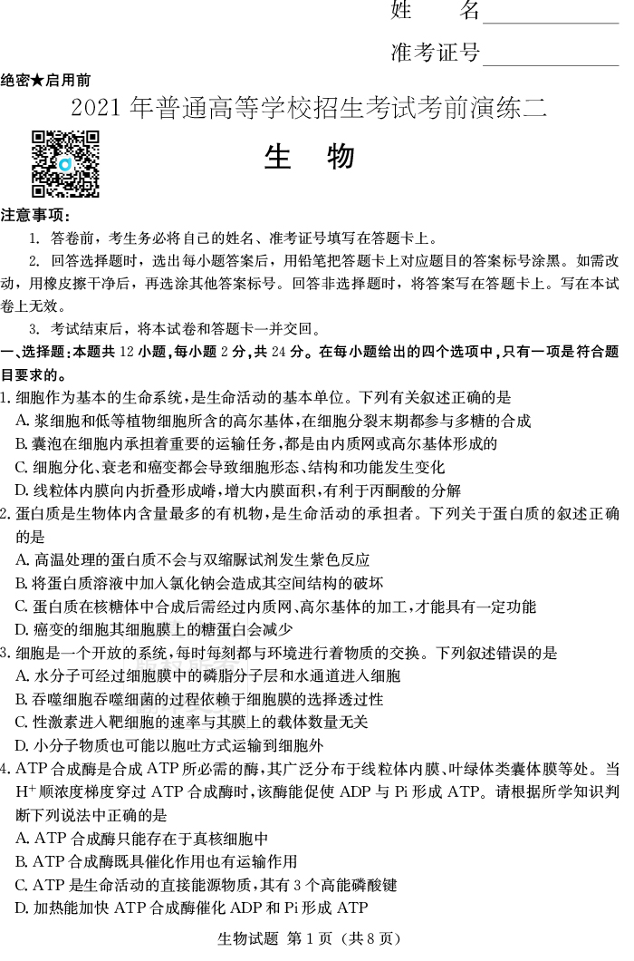 下一篇:【數學】2021年普通高等學校招生全國統一考試考前演練(二)