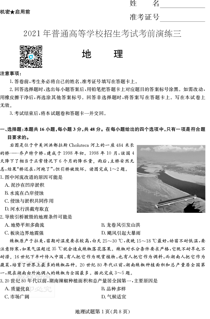 下一篇:【化學】2021年普通高等學校招生全國統一考試考前演練(三)