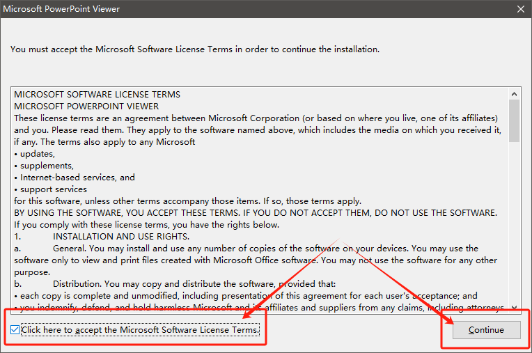 1. 解壓縮或直接運行壓縮包內的“PowerPointViewer.exe”