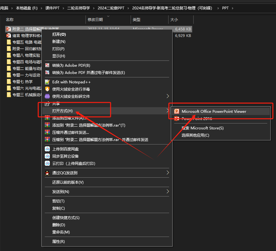 3. 安裝完成后,右鍵單擊需打開的PPT,打開方式選擇 PowerPointViewer 打開