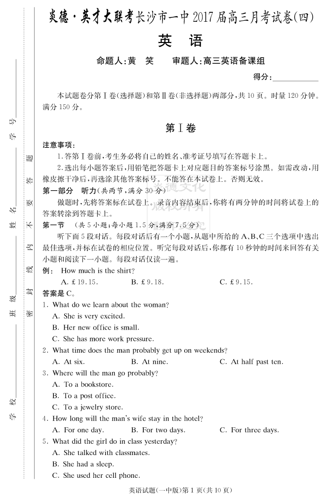 | 資源類別: | 名校月考 | |