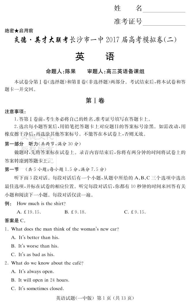 下一篇:【語文】炎德英才大聯考2017長沙一中高三11次月考(模擬二)
