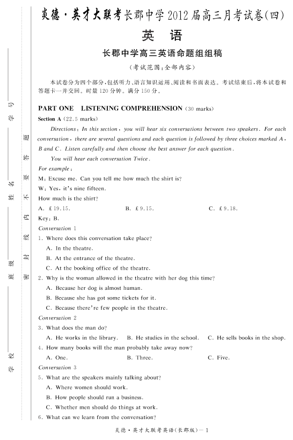 下一篇:【語文】炎德英才大聯考2012長郡中學高三4次月考